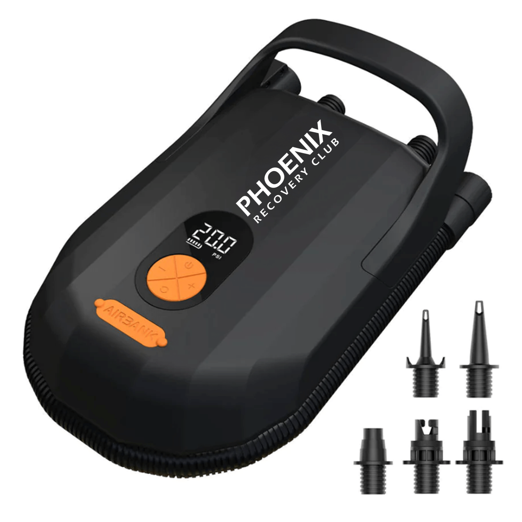 Notre pompe électrique polyvalente est l'accessoire indispensable pour gonfler et dégonfler rapidement votre Phoenix Tub Pro et Phoenix Barrel.